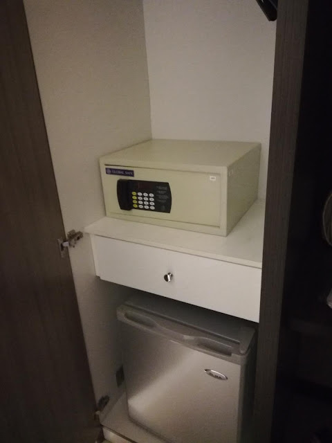 Inilah bilik kami sekeluarga untuk 2 malam. Selesa kan...Pada kolin dah cukup selesa. Aircond pun sejuk aje, kemudahan ringkas semua ada. Yang bagus korang tak perlu minta seterika dah. Memang dah ready dalam bilik. Korang kena faham ye..pompuan Malaysia ini sibuk berjalan nak iron tudung hahaha...aku memang bawak tudung siap iron segala...tak kuasa nak bawak weii. Bawa yang semua tak perlu gosok pun. Ada cerek air, nak buat kopi dan teh pun ada. Dan untuk barang berharga korang boleh letak dalam peti simpanan yang disediakan. Mini fridge pun ada jugak dalam bilik ini.