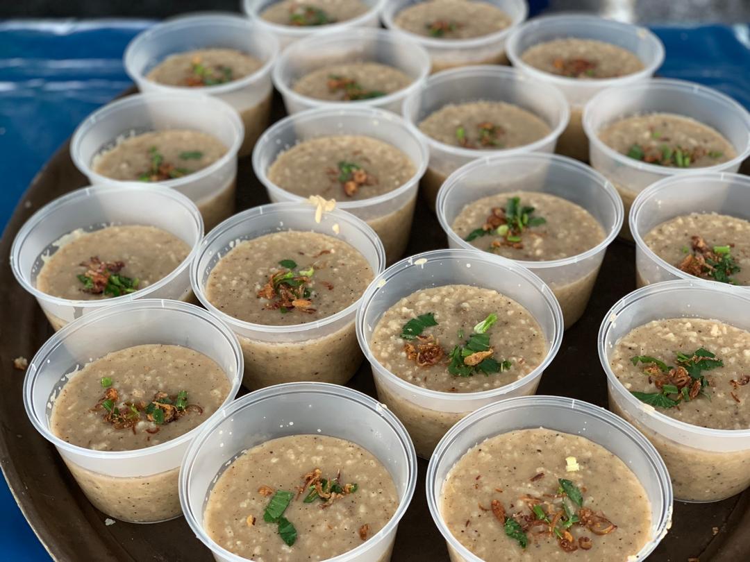 Bermula dari 7.00 pagi sebanyak 300 kilogram beras, 80kg daging dan beberapa bahan masakan yang lain telah disediakan untuk memasak. Dan bermula dari jam 2.00 petang ianya pun mula dipek kan untuk edaran. Dan jangan tak percaya mereka menyediakan sebanyak 8,000 bungkus bubur lambuk tau.